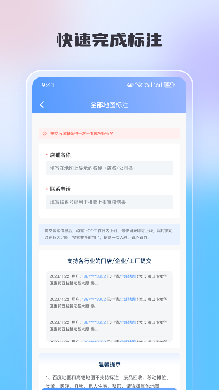 地圖標(biāo)注管家,提供代標(biāo)注服務(wù),微信地圖標(biāo)注 店鋪名稱,讓客戶快速找到您的店,標(biāo)注公司位置企業(yè)名片,微信地圖標(biāo)注.支持全部熱門(mén)導(dǎo)航地圖標(biāo)注快速申請(qǐng)標(biāo)注,全地圖標(biāo)注